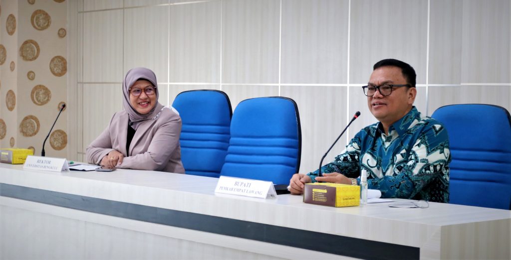 BUPATI Kabupaten Empat Lawang Provinsi Sumatera Selatan, H. Joncik Muhammad, S.Si, S.H, MM, MH, berkunjung ke Universitas Bengkulu dan menandatangani nota kesepahaman kerjasama atau Memorandum of Understanding (MoU) dengan Rektor UNIB Dr. Retno Agustina Ekaputri, S.E, M.Sc, di ruang rapat tiga rektorat UNIB, Jumat (24/6/2022).