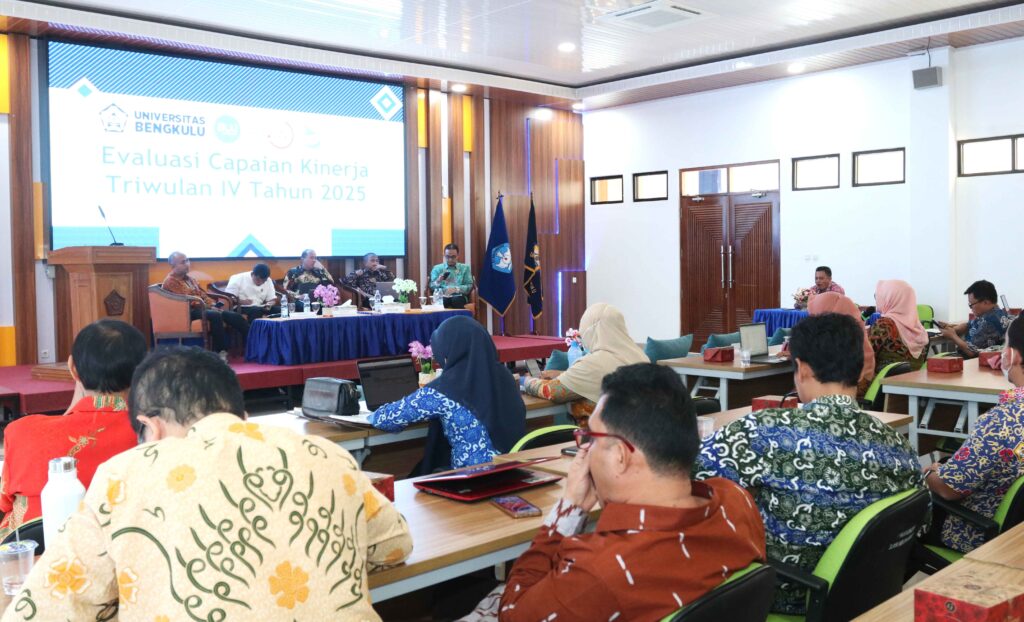 Universitas Bengkulu (Unib) menggelar rapat evaluasi capaian kinerja Triwulan IV Tahun 2025 di Ruang Rapat Utama Gedung Layanan Terpadu (GLT), Selasa (30/12/2025). Rapat yang dipimpin langsung Rektor Unib, Prof. Dr. Indra Cahyadinata, SP, M.Si, ini menjadi forum strategis untuk meninjau kinerja seluruh fakultas, lembaga, dan unit kerja, sekaligus mengevaluasi implementasi Indikator Kinerja Utama (IKU) Unib […]