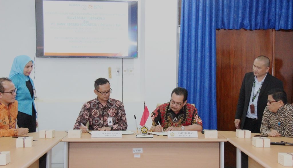 PERUSAHAAN BUMN, PT. Bank Negara Indonesia (Persero) Tbk mengaku sangat senang dan bangga telah banyak melakukan kerjasama dan menjadi bagian dari kemajuan Universitas Bengkulu. Maka untuk memperkuat kerjasama antar institusi, PT. BNI melakukan penandatanganan Nota Kesepahaman atau Memorandum of Understanding (MoU) dengan UNIB, Kamis (10/10/2019).