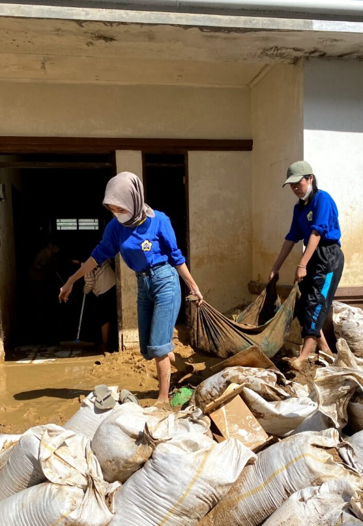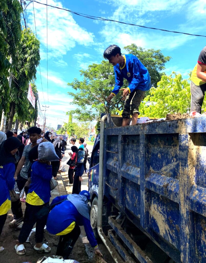 Solidaritas mahasiswa Unib dan Unand serta kelompok masyarakat lainnya membersihkan lumpur.(foto:ist-Risanti)