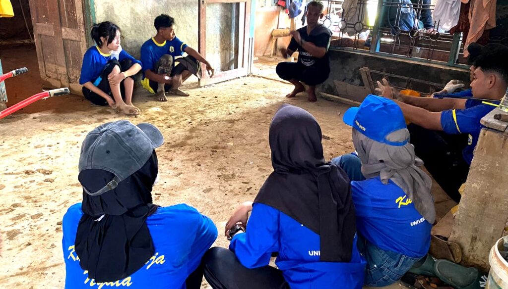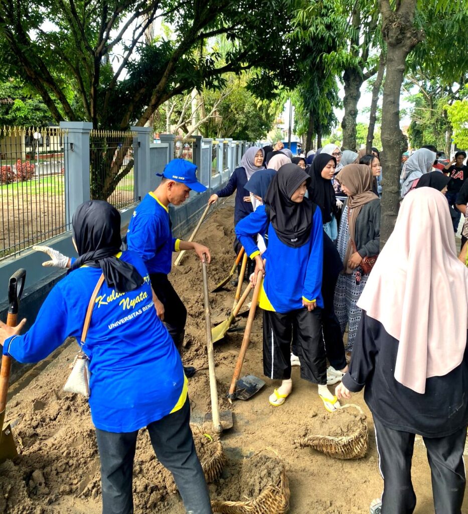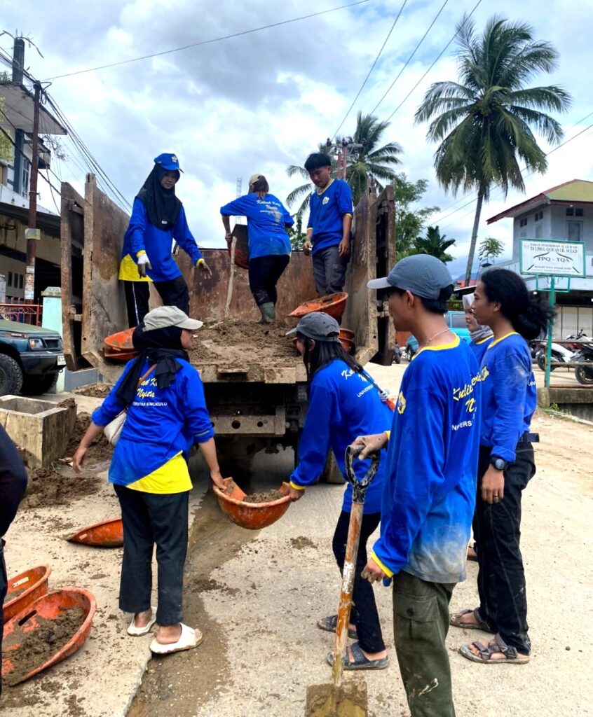 Menjelang siang, keringat mengalir di wajah para mahasiswa. Pakaian mereka berlumur lumpur, tangan pegal oleh kerja keras. Namun di balik lelah itu, ada kepuasan yang tak tergantikan.