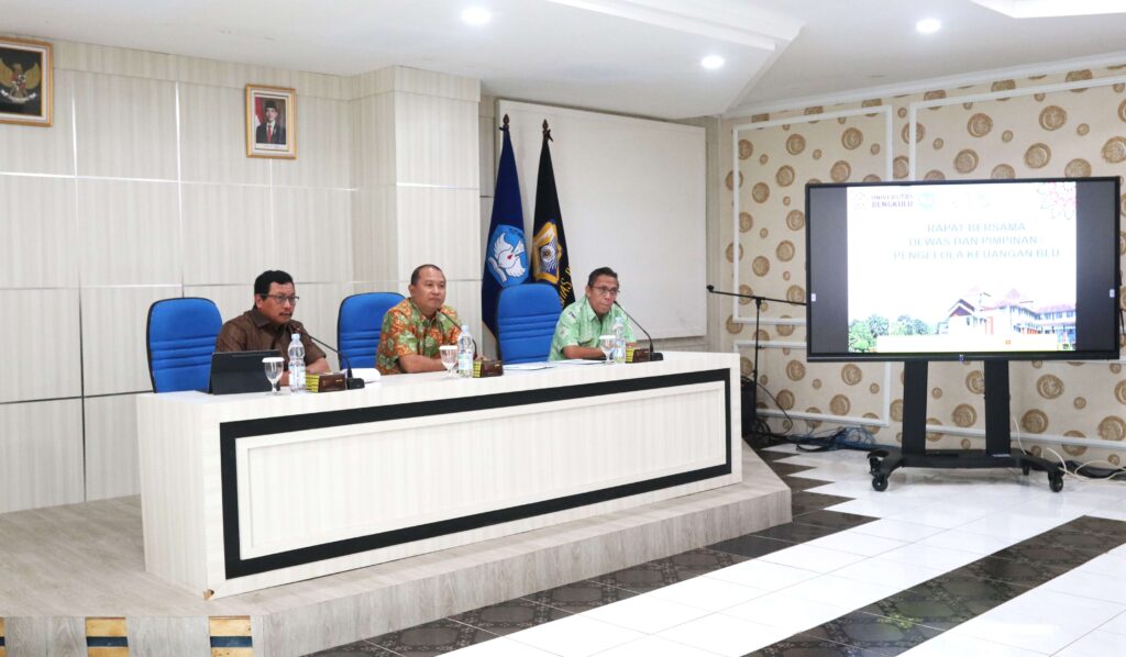 Dewan Pengawas (Dewas) bersama pimpinan pengelola keuangan Badan Layanan Umum (BLU) Universitas Bengkulu (Unib) menggelar rapat evaluasi capaian kinerja keuangan hingga triwulan III tahun 2025, Jumat (7/11/2025), bertempat di Ruang Rapat Tiga Gedung Rektorat Unib.