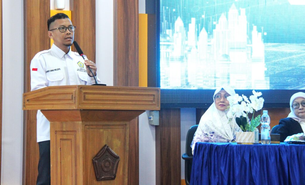 Ketua LSP Unib, Mukti Dono Wilopo, ketika melaporkan tentang perkembangan kegiatan pelatihan dan sertifikasi kompetensi dosen, tenaga kependidikan, dan mahasiswa Unib sepanjang 2024-2025.(foto:hms1)