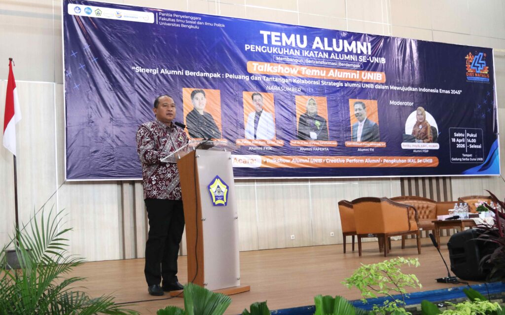 Rangkaian fiesta Dies Natalis ke-44 Universitas Bengkulu (Unib) semakin semarak dengan digelarnya acara Temu Alumni dan Pelantikan Pengurus Ikatan Alumni (IKAL) fakultas se-Unib, Sabtu (18/4/2026), di Gedung Serba Guna (GSG) Unib.
