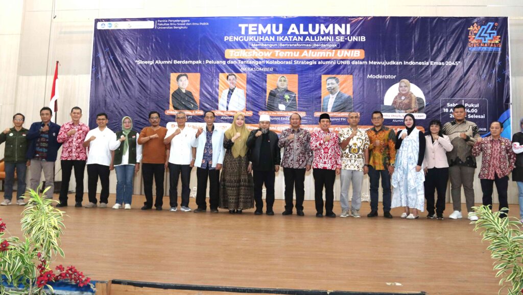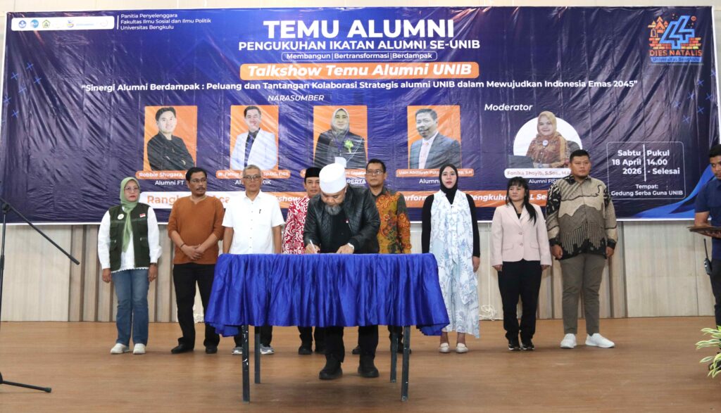 Mengusung tema “Sinergi Alumni Berdampak: Peluang dan Tantangan Kolaborasi Strategis Alumni Unib dalam Mewujudkan Indonesia Emas 2045,” kegiatan ini menjadi momentum penting untuk memperkuat konsolidasi dan peran strategis alumni dalam mendukung kemajuan almamater serta pembangunan daerah.