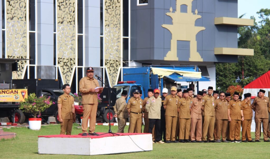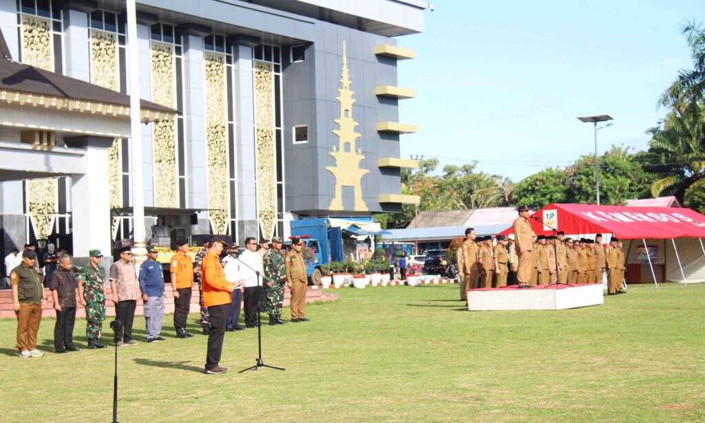 Rektor dan Wakil Rektor II Unib mengikuti apel siaga bencana di Kantor Gubernur dengan hikmat.(foto:hms1)