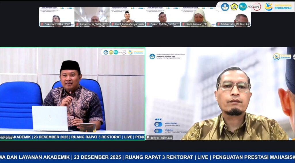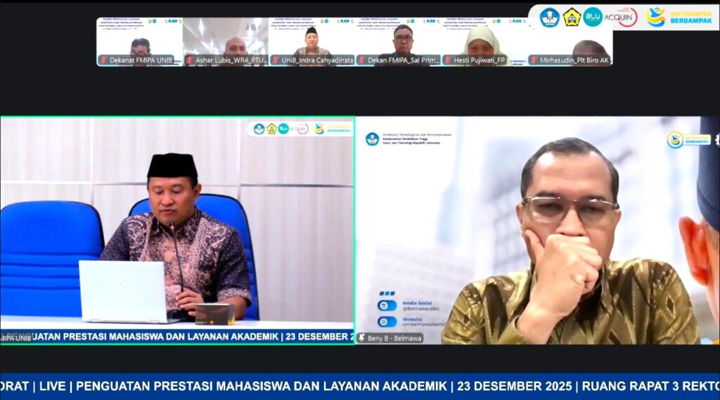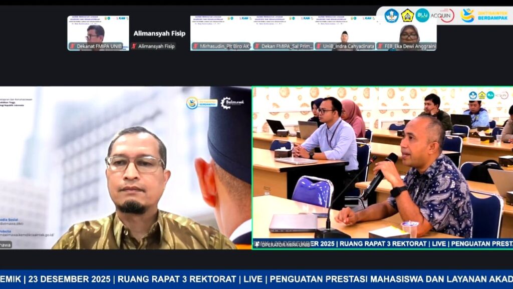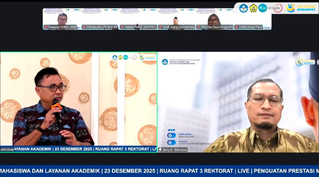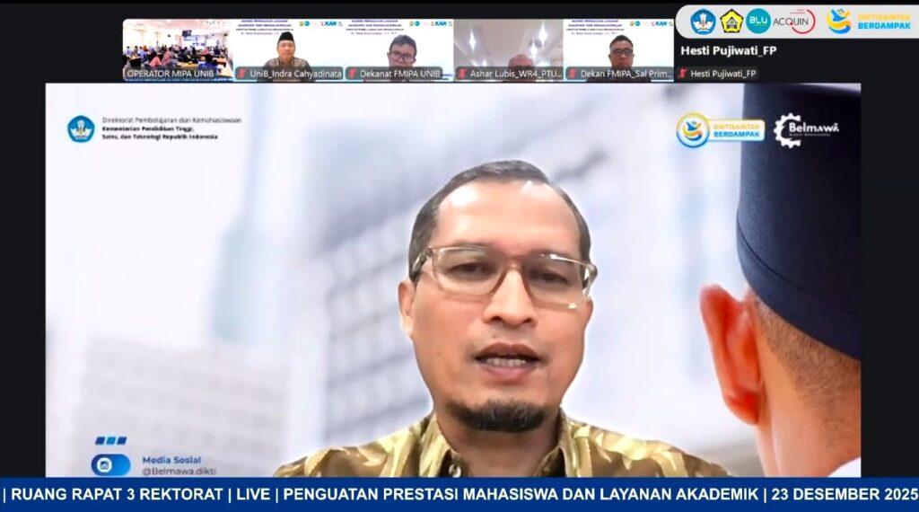 Universitas Bengkulu (Unib) terus memperkuat komitmennya dalam meningkatkan kualitas layanan akademik dan kemahasiswaan. Hal tersebut tercermin melalui penyelenggaraan kuliah umum bertema “Penguatan Layanan Akademik dan Kemahasiswaan” yang menghadirkan Direktur Pembelajaran dan Kemahasiswaan (Belmawa) Direktorat Jenderal Pendidikan Tinggi (Ditjen Dikti) Kementerian Pendidikan Tinggi, Sains, dan Teknologi (Kemdiktisaintek) Republik Indonesia, Dr. Beny Bandanadjaja, S.T, M.T.