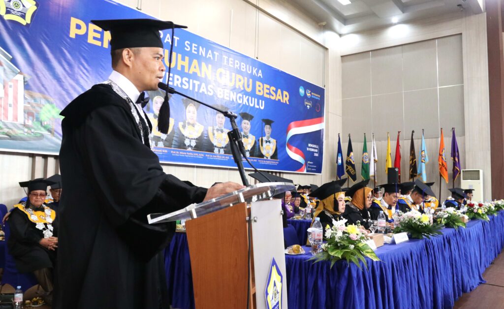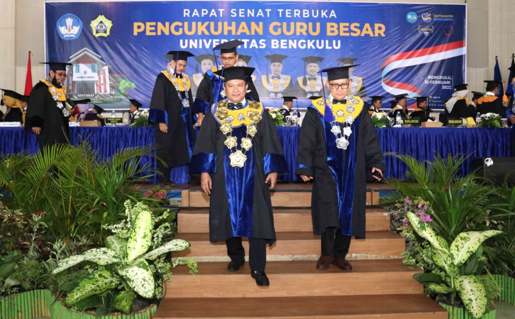 “Atas nama pimpinan Universitas Bengkulu, saya menyampaikan selamat dan apresiasi setinggi-tingginya kepada para profesor yang hari ini dikukuhkan. Gelar profesor bukanlah garis akhir, melainkan awal dari tanggung jawab akademik yang lebih besar,” ujar Rektor Unib, Prof. Dr. Indra Cahyadinata, SP, M.Si.