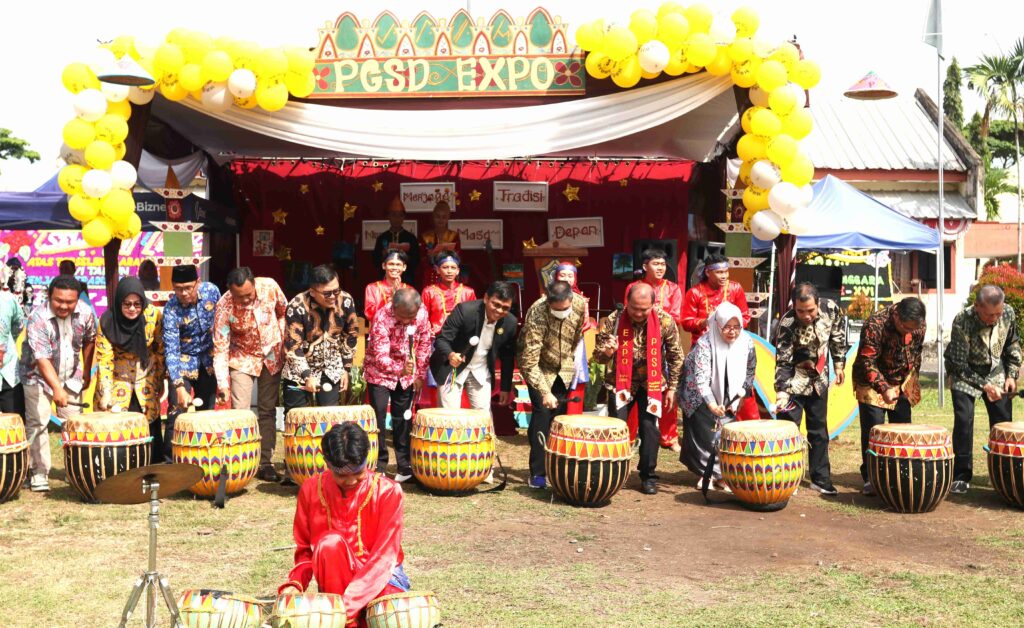 Atraksi musik dol dan foto bersama mewarnai kemeriahan acara pembukaan PGSD Expo XVI.(foto:hms1)