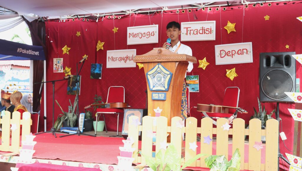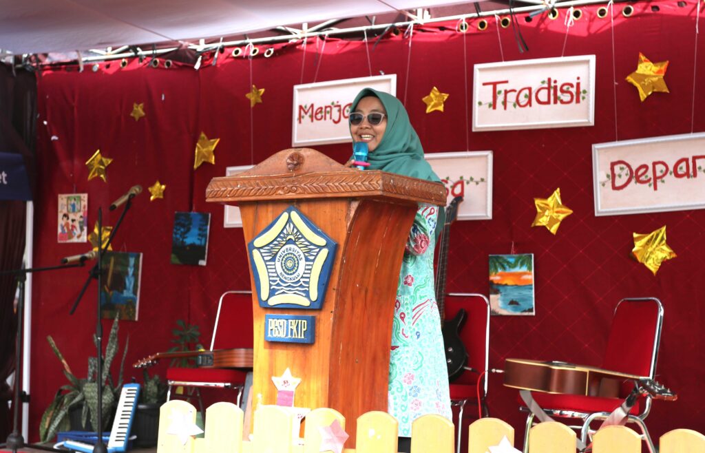 Ketua Prodi PGSD dan Ketua Panitia PGSD Expo menyampaikan sambutan, serta tampak para mahasiswa antusias mengikuti kegiatan PGSD Expo XVI.(foto:hms1)