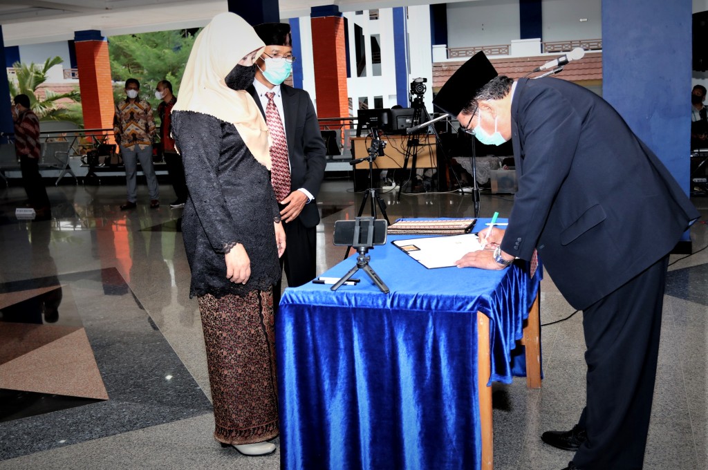 Pelantikan dilaksanakan secara tatap muka di hall rektorat UNIB dengan menerapkan protokol kesehatan Covid-19 terhadap perwakilan pejabat fungsional dan secara daring (online) menggunakan aplikasi Zoom Meeting, serta disiarkan langsung (live streaming) via channel YouTube Universitas Bengkulu, Selasa (22/12/2020).
