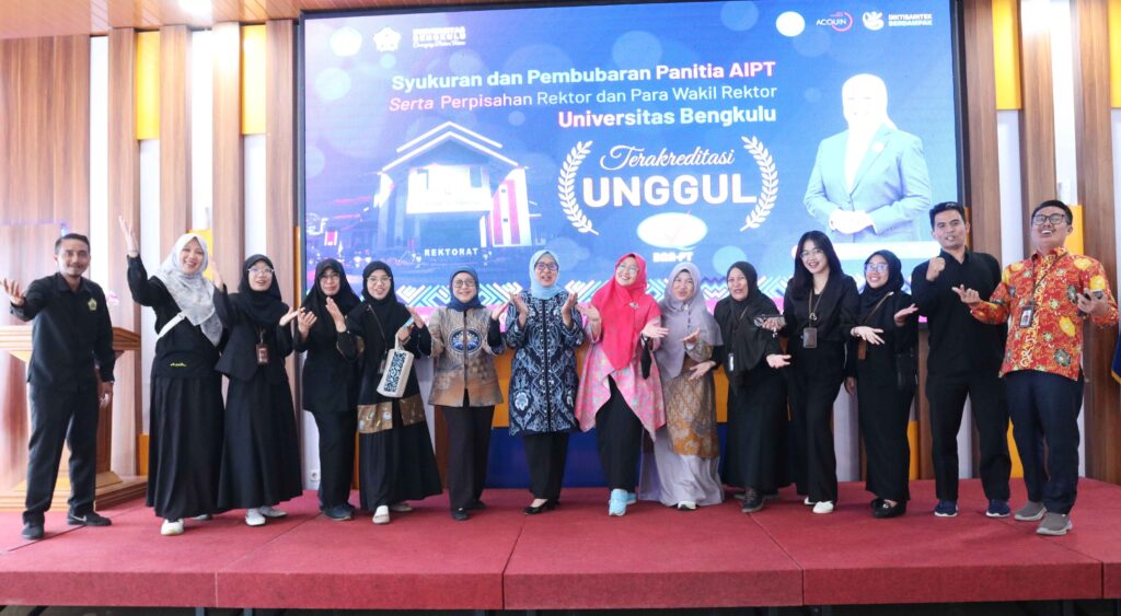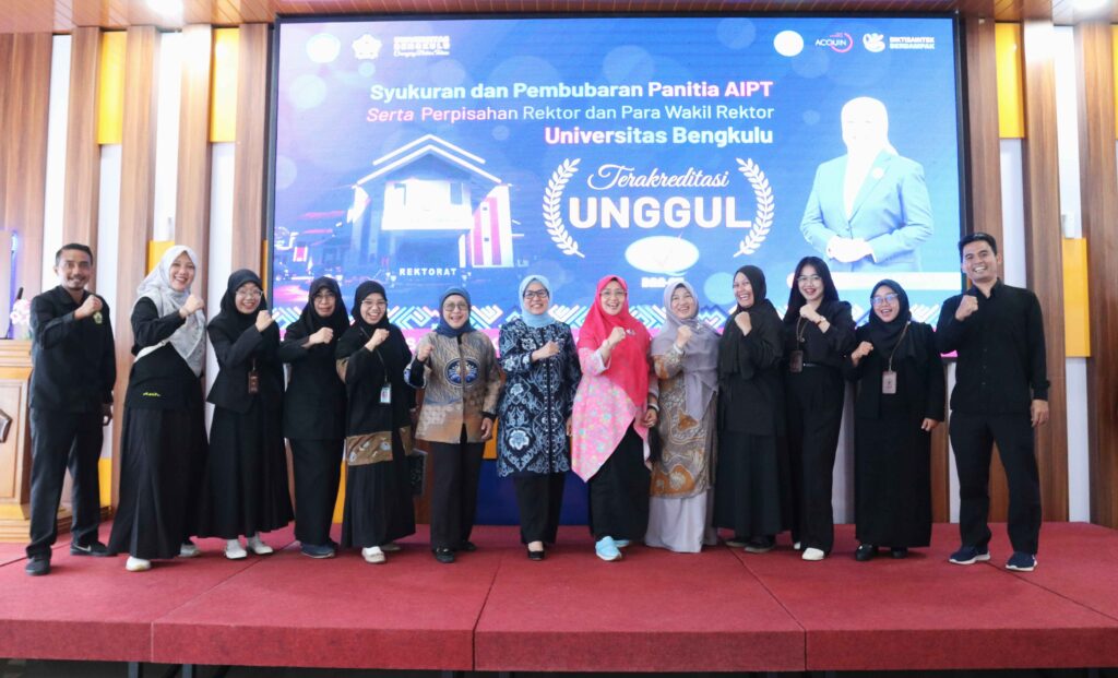 Acara syukuran Akreditasi Unggul dan pembubaran Panitia AIPT Universitas Bengkulu (Unib) yang berlangsung di Gedung Layanan Terpadu (GLT), Jumat (3/10/2025), sekaligus menjadi momen perpisahan Rektor dan Wakil Rektor periode 2021–2025 yang akan mengakhiri masa jabatannya pada 6 Oktober mendatang.