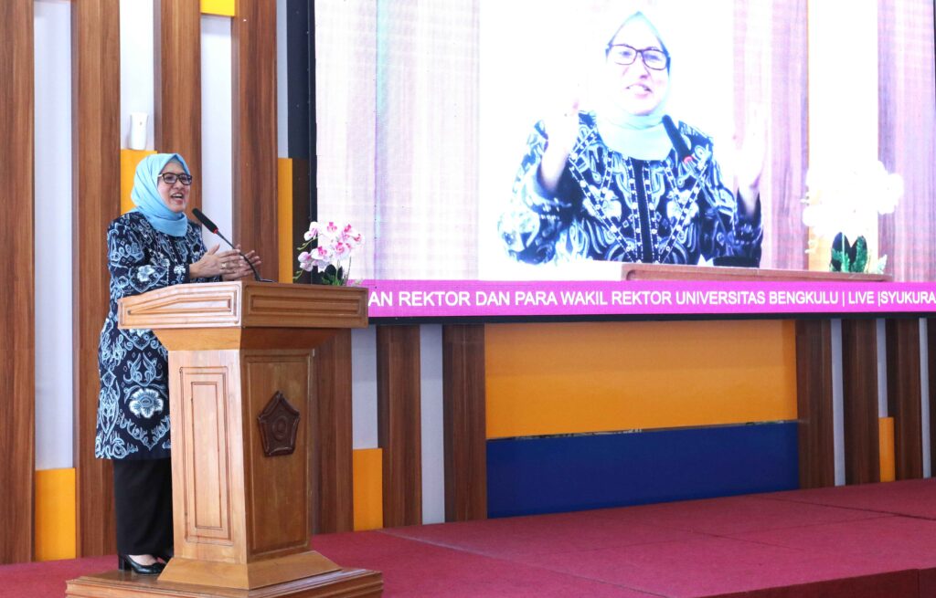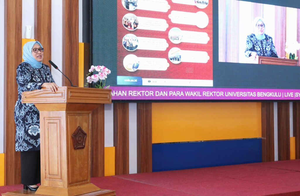 Mengakhiri sambutannya, Dr. Retno menyampaikan permohonan maaf dan harapannya bagi masa depan Unib. “Saya mohon maaf atas segala kekurangan selama memimpin. Mari kita jaga keberhasilan yang telah diraih dan terus memantapkan budaya inovasi serta kolaborasi demi Unib yang lebih maju,” tuturnya.