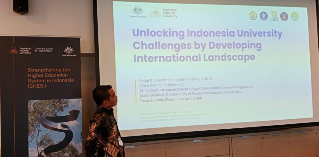 Dekan FKIP Unib, Abdul Rahman, ketika mengikuti program SHESI di Australian National University dan University of Melbourne tahun 2025.(foto:ist-fkip)