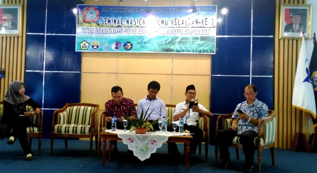 HIMPUNAN Mahasiswa Ilmu Kelautan (HIMAILKA) Universitas Bengkulu menggelar seminar nasioal tentang potensi pariwisata bahari menuju wonderful Bengkulu 2020, Rabu (19/4/2017) di ruang rapat utama gedung rektorat UNIB.