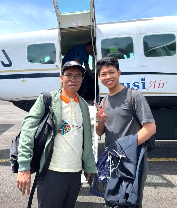 Tim Pengabdi FH Unib menggunakan pesawat Cessna tiba di Pulau Enggano dan langsung meninjau Objek Wisata Bak Blaw di Desa Meok.(foto:ist/adrian)