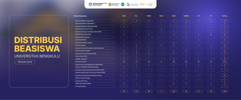 Ucapan Terima Kasih kepada Mitra Pemberi Beasiswa di Universitas Bengkulu
