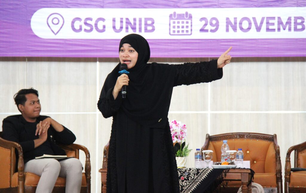 Psikolog Indah Syoraya membuka sesi motivasi dengan mengajak mahasiswa mengenali potensi diri dan percaya pada kemampuan masing-masing.