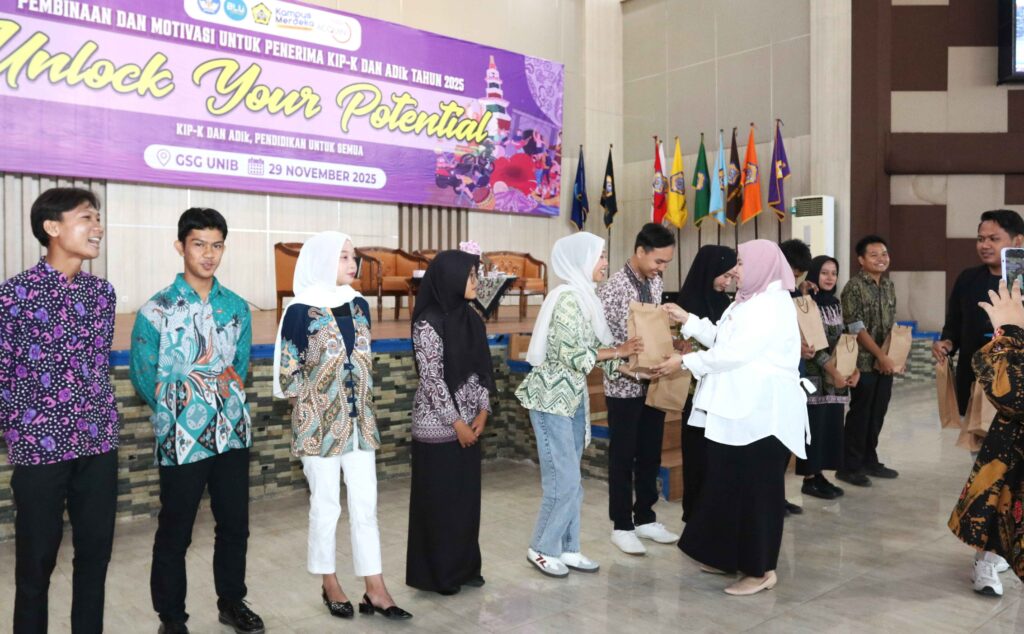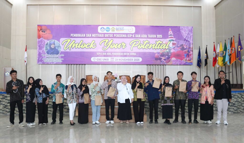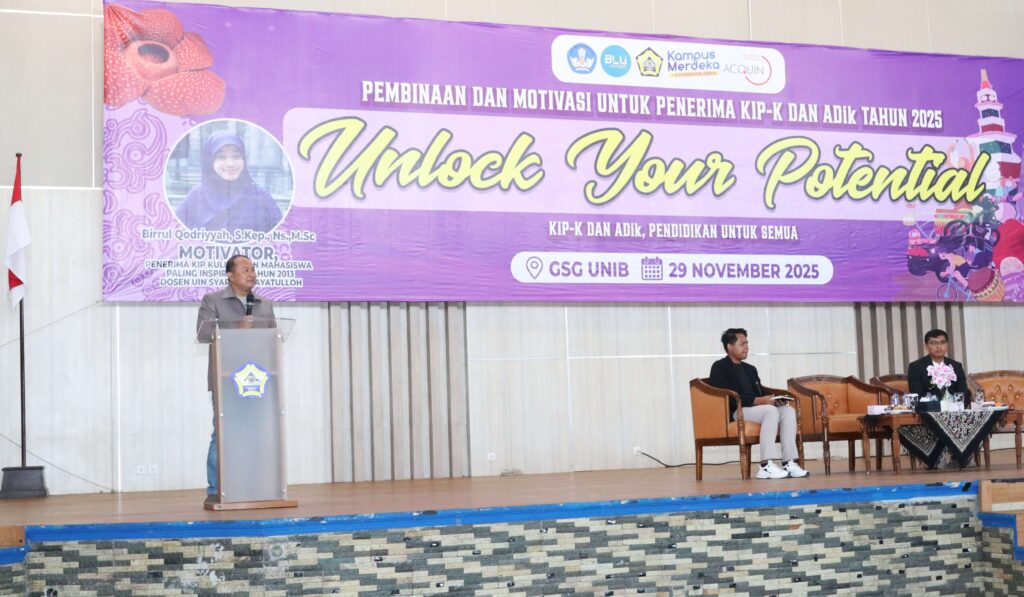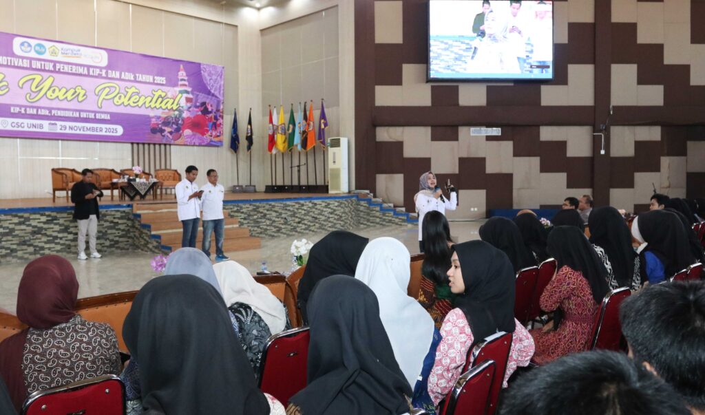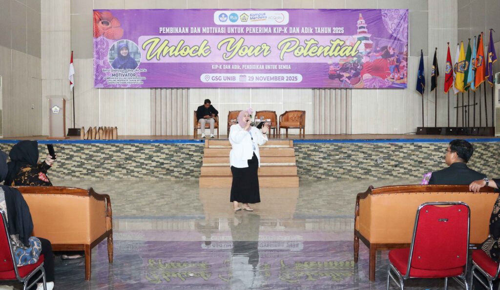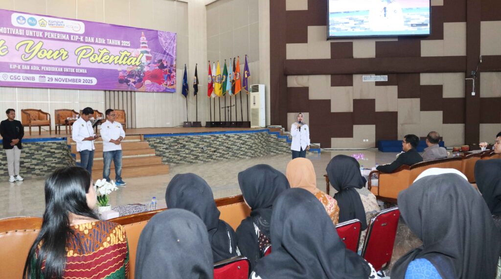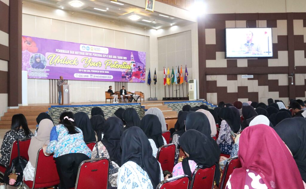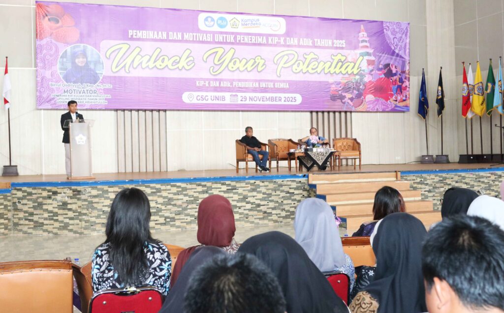 Universitas Bengkulu (Unib) terus memperkuat komitmennya dalam membina mahasiswa penerima beasiswa nasional. Sebanyak lebih dari 900 mahasiswa penerima Kartu Indonesia Pintar Kuliah (KIP-K) dan Afirmasi Pendidikan Tinggi (ADiK) mengikuti kegiatan pembinaan dan motivasi bertajuk “Unlock Your Potential”, yang dikemas dalam format talkshow inspiratif di Gedung Serba Guna (GSG) Unib, Sabtu (29/11/2025).