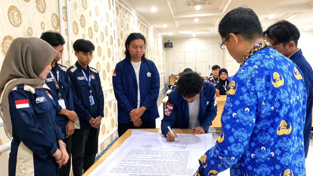 Pasangan Calon Presma dan Cawapresma berserta para Penyelenggara Pemira Unib 2026 mendeklarasikan Pemira Damai, Jujur dan Adil, serta menandatangani Fakta Integritas.(foto:ist-rif)