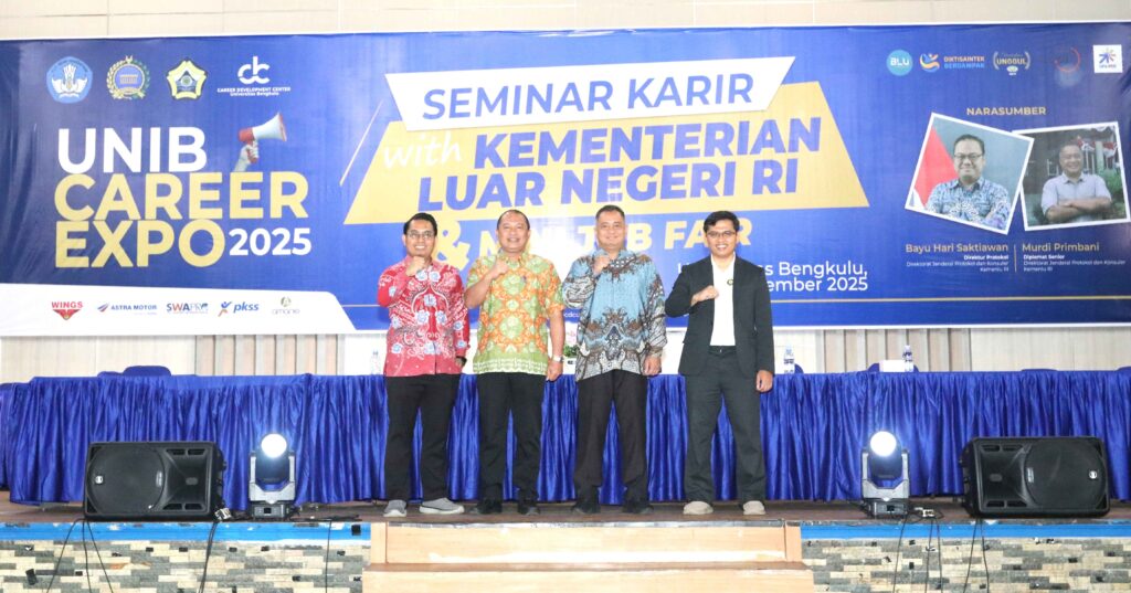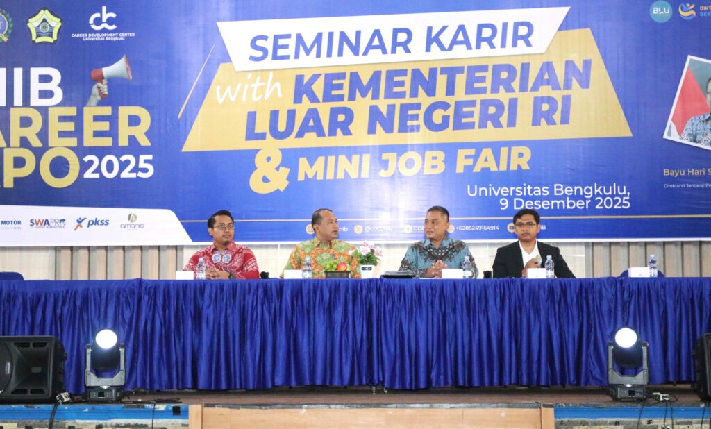 Universitas Bengkulu (Unib) melalui Career Development Center (CDC) menyelenggarakan Seminar dan Career Expo 2025 bekerja sama dengan Kementerian Luar Negeri Republik Indonesia, Selasa (9/12/2025), di Gedung Serba Guna (GSG) Unib. Kegiatan ini diikuti ratusan mahasiswa tingkat akhir serta calon wisudawan yang akan diwisuda pada 10 Desember 2025.
