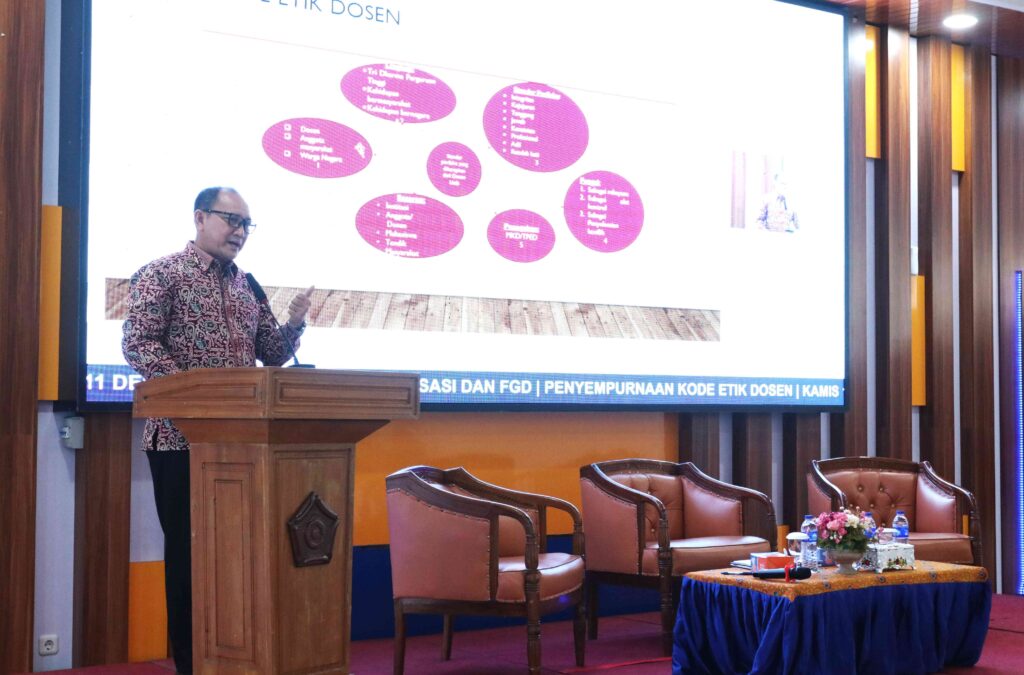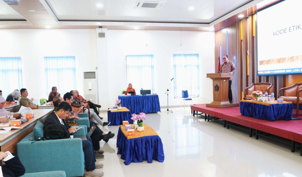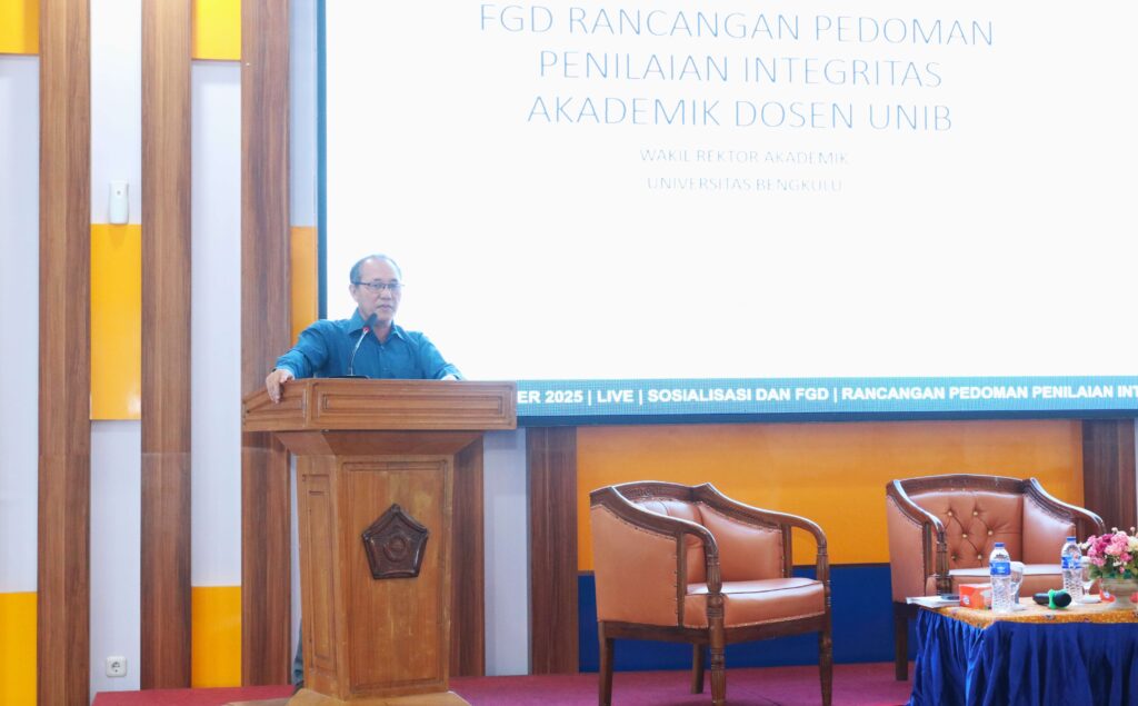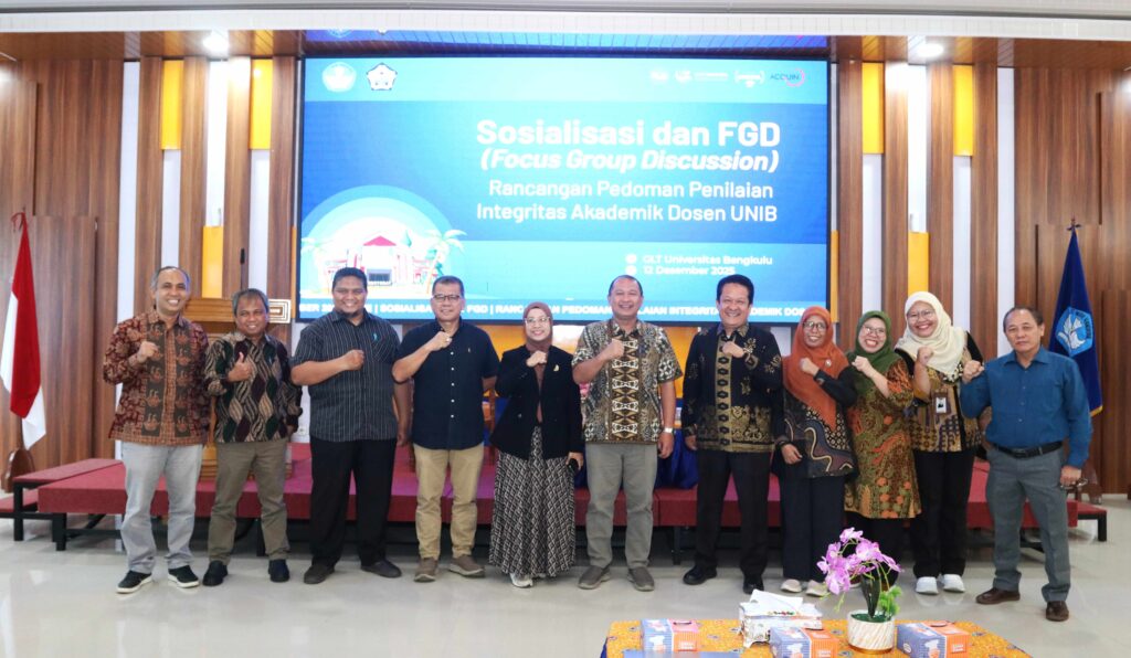 Universitas Bengkulu (Unib) melalui Tim Penegak Kode Etik Dosen dan Integritas Akademik menggelar Sosialisasi dan Forum Group Discussion (FGD) Penyempurnaan Kode Etik Dosen serta Penyusunan Pedoman Penilaian Integritas Akademik, Kamis–Jumat (11–12/12/2025), di ruang rapat utama Gedung Layanan Terpadu (GLT) Unib.