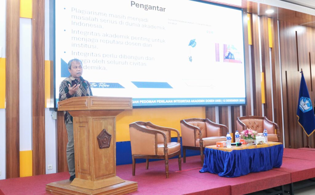 Dalam sambutannya, Rektor Unib Prof. Indra menyampaikan apresiasi atas terselenggaranya kegiatan ini. Ia menegaskan bahwa berdasarkan regulasi terbaru, rekomendasi Tim Integritas Akademik kini menjadi syarat wajib dalam proses kenaikan jabatan fungsional dosen.