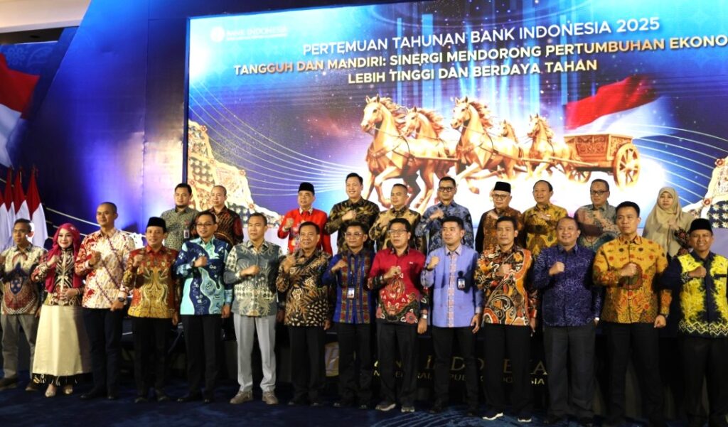 Rektor Unib Prof. Indra Cahyadinata foto bersama dengan Pemerintah Daerah dan Pelaku Usaha dalam acara Pertemuan Tahunan Bank Indonesia (PTBI) 2025.(foto: ist-net).