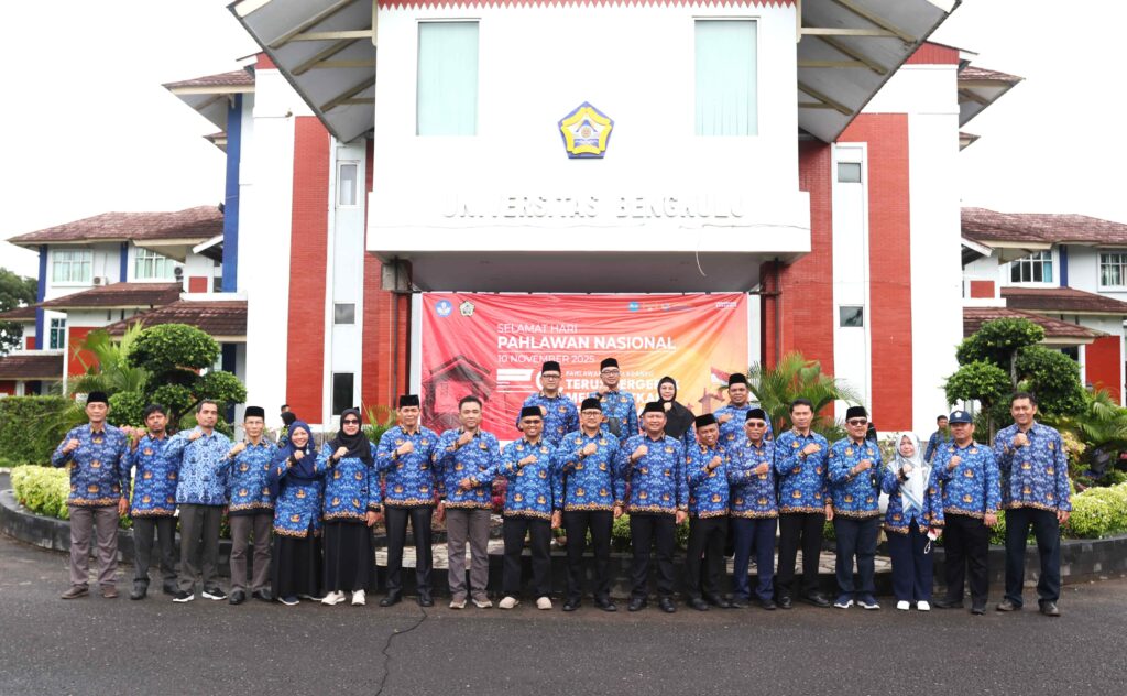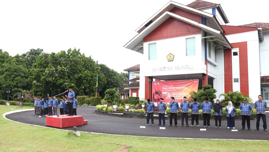 Universitas Bengkulu (Unib) menggelar upacara peringatan Hari Pahlawan Tahun 2025 di halaman Gedung Rektorat Unib, Senin (10/11/2025). Upacara berlangsung khidmat dan tertib, diikuti oleh pimpinan universitas, ketua senat, para dekan, ketua lembaga dan unit penunjang akademik, dosen, tenaga kependidikan, serta ratusan mahasiswa.
