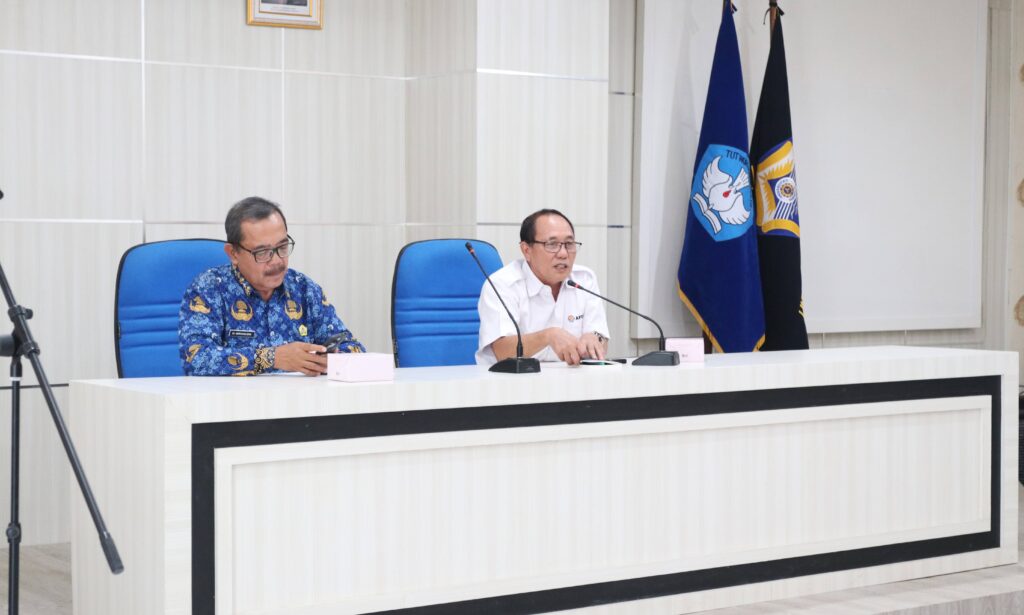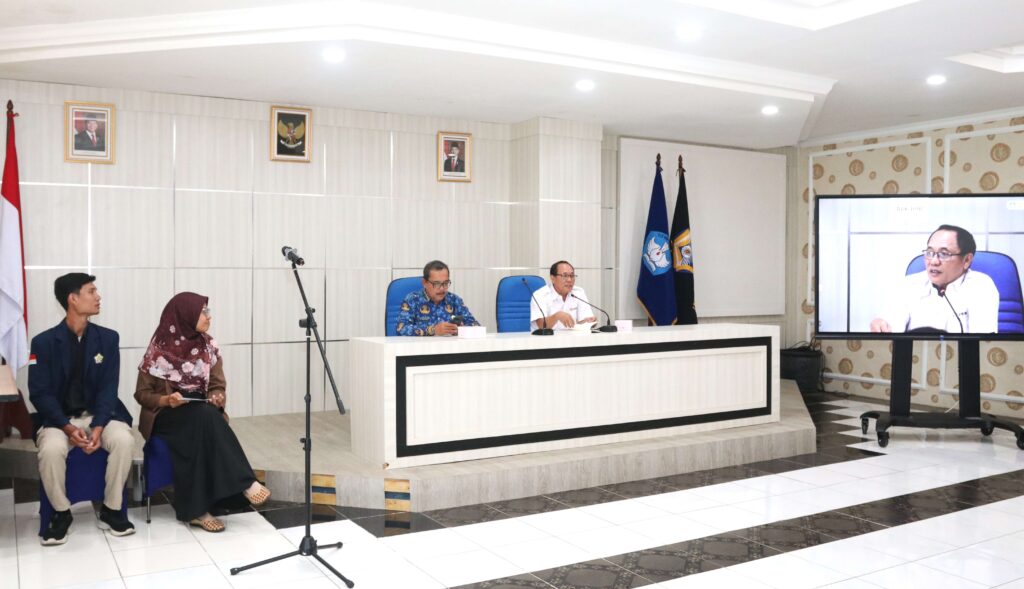 Wakil Rektor I Unib Prof. Kamaludin didampingi Kepala Biro Akademik dan Kemahasiswaan Unib saat membuka webinar tentang pelaung beasiswa LPDP co-funding Francis Program.(foto:hms1)