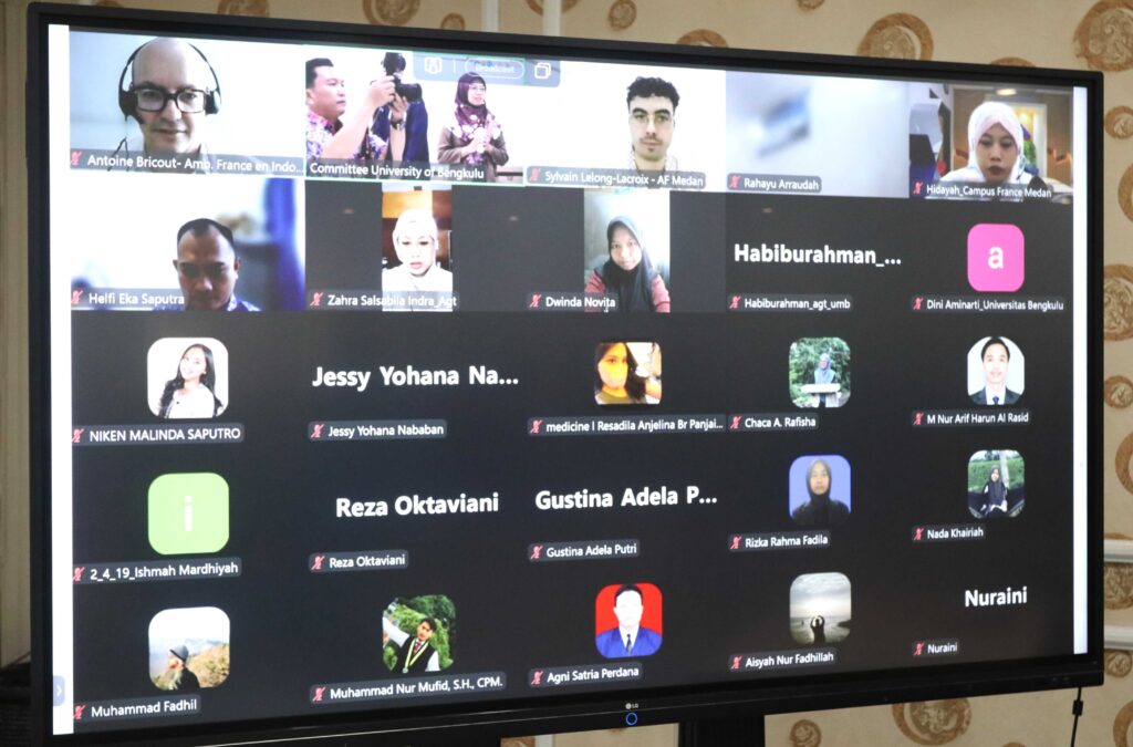 Universitas Bengkulu (Unib) terus mendorong peningkatan kualitas sumber daya manusia melalui akses pendidikan internasional. Kali ini, Unib bekerja sama dengan Kedutaan Besar Prancis di Indonesia, Alliance Française Medan, serta Campus France Medan menggelar webinar hybrid (luring dan daring) bertema peluang Beasiswa Lembaga Pengelola Dana Pendidikan (LPDP) skema co-funding untuk melanjutkan studi ke Prancis, baik jenjang magister (S2) maupun doktor (S3), Kamis (5/2/2026).
